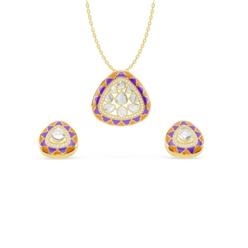 Ishvani Enamel Polki Pendant Set 14kt & 18kt Gold
