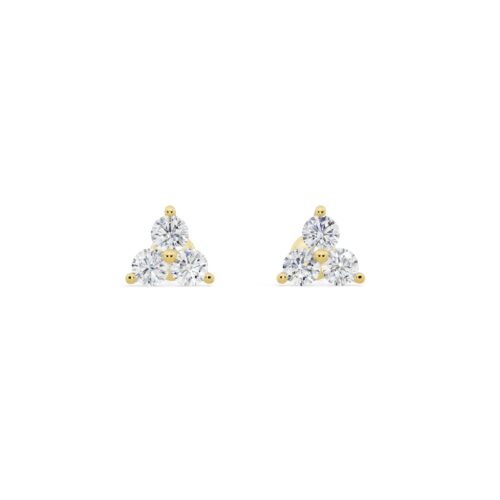 Three Stone Lab Grown Diamond Stud Earrings – 0.64 Carat Gold Elegance