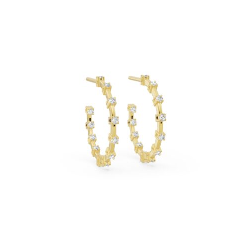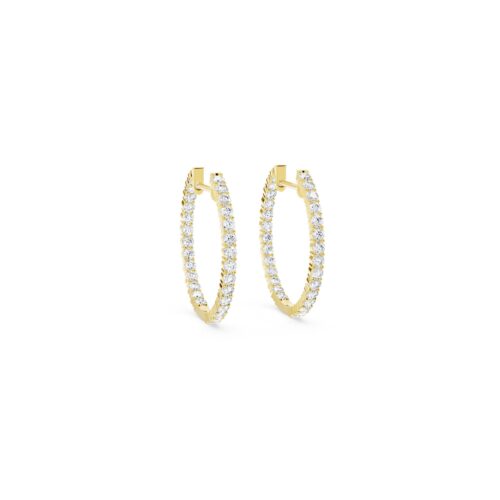 From delicate petite hoops to bold oversized designs, our lab-grown diamond hoop earrings feature inside-out and pavé settings for sparkle at every angle. Available in yellow, white, and rose gold, these hoops pair effortlessly with both casual outfits and evening attire, making them a must-have for modern fine jewelry lovers.