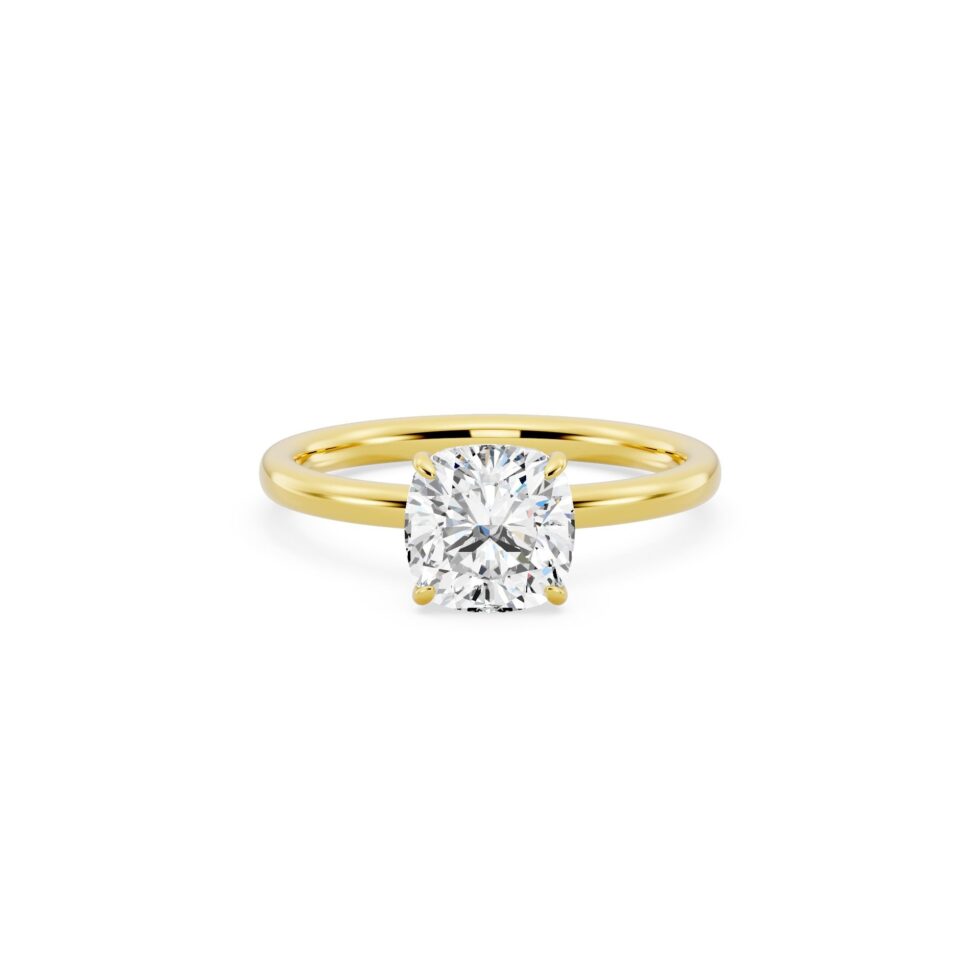 Cushion Cut Solitaire Lab Grown Diamond Ring in Gold