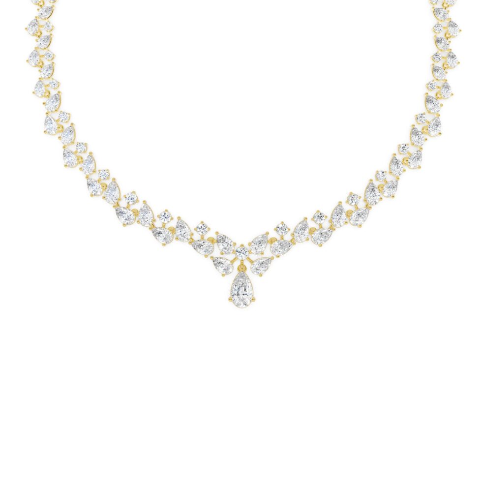 Add timeless elegance to your neckline with our Classic Pear Cut Diamond Drop Necklace, showcasing 37.24 carats of lab grown pear and round diamonds. Centered with a dazzling 2.76 carat pear-shaped diamond, this luxurious diamond necklace is available in 18KT or 14KT yellow gold, white gold, or rose gold. Whether worn as a wedding necklace, anniversary gift, or red carpet statement, it’s crafted to shine from every angle. Ethically sourced, conflict-free, and certified, this lab grown diamond necklace blends classic brilliance with modern sustainability—making it the ultimate fine jewelry piece for women who love refined glamour.