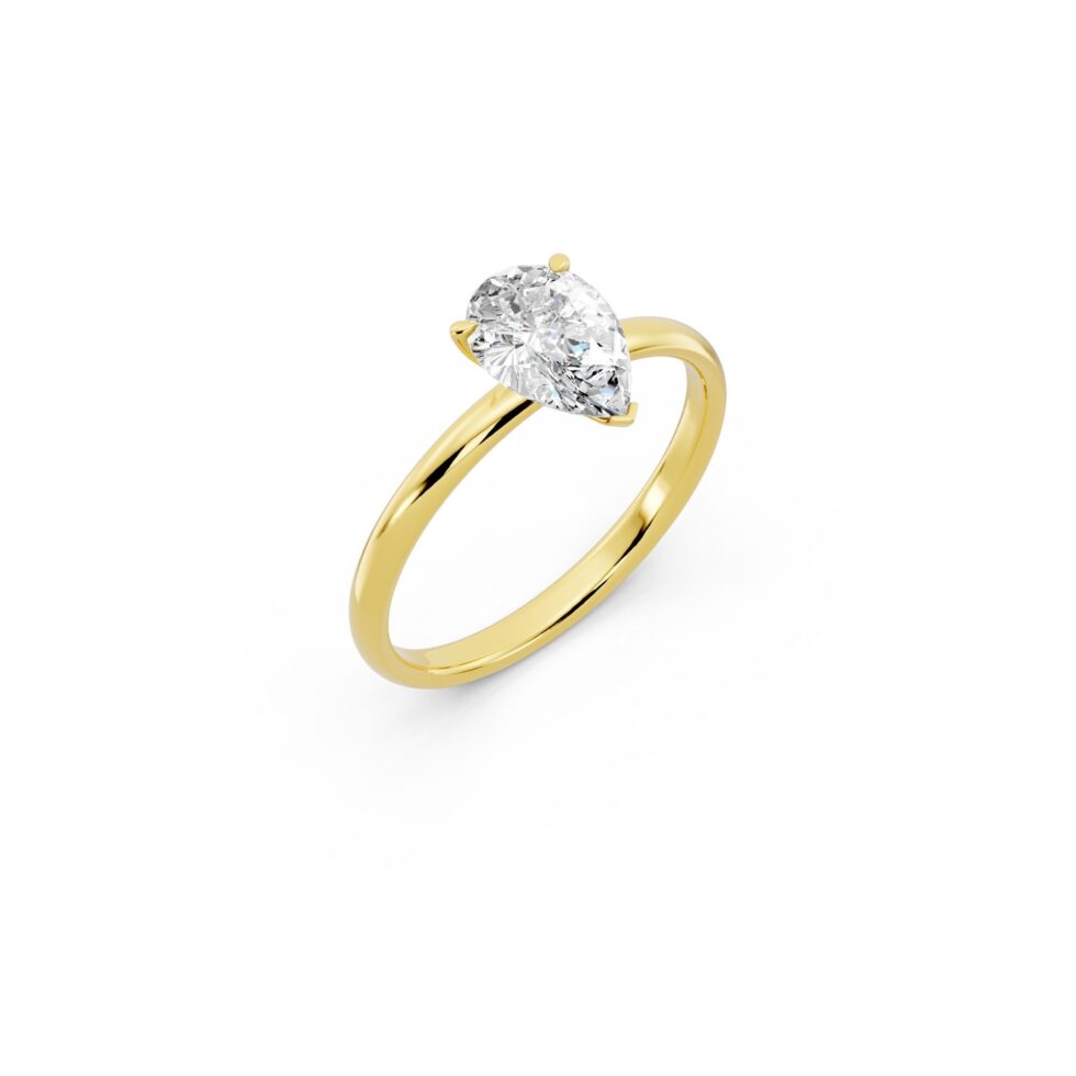 Timeless Pear Cut Diamond Solitaire Ring in White or Yellow Gold