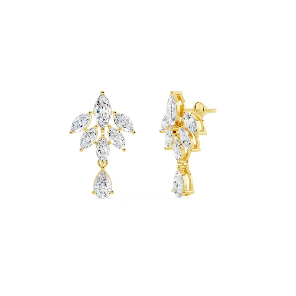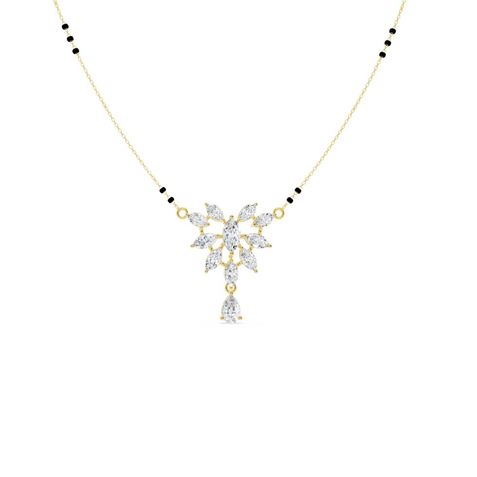 Celebrate eternal love and elegance with the Divine Petal Diamond Mangalsutra With Earring. Crafted in luxurious Yellow Gold, this exquisite set features Marquise and Pear-shaped diamonds with exceptional VVS–VS clarity and F–G color, totaling 4.45 carats. Designed to blend tradition with modern grace, this diamond mangalsutra with matching earrings radiates divine charm — a perfect gift for weddings, anniversaries, or special occasions.