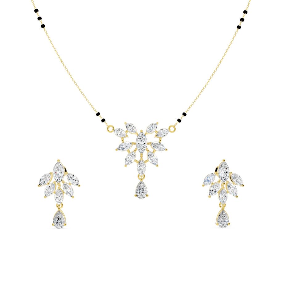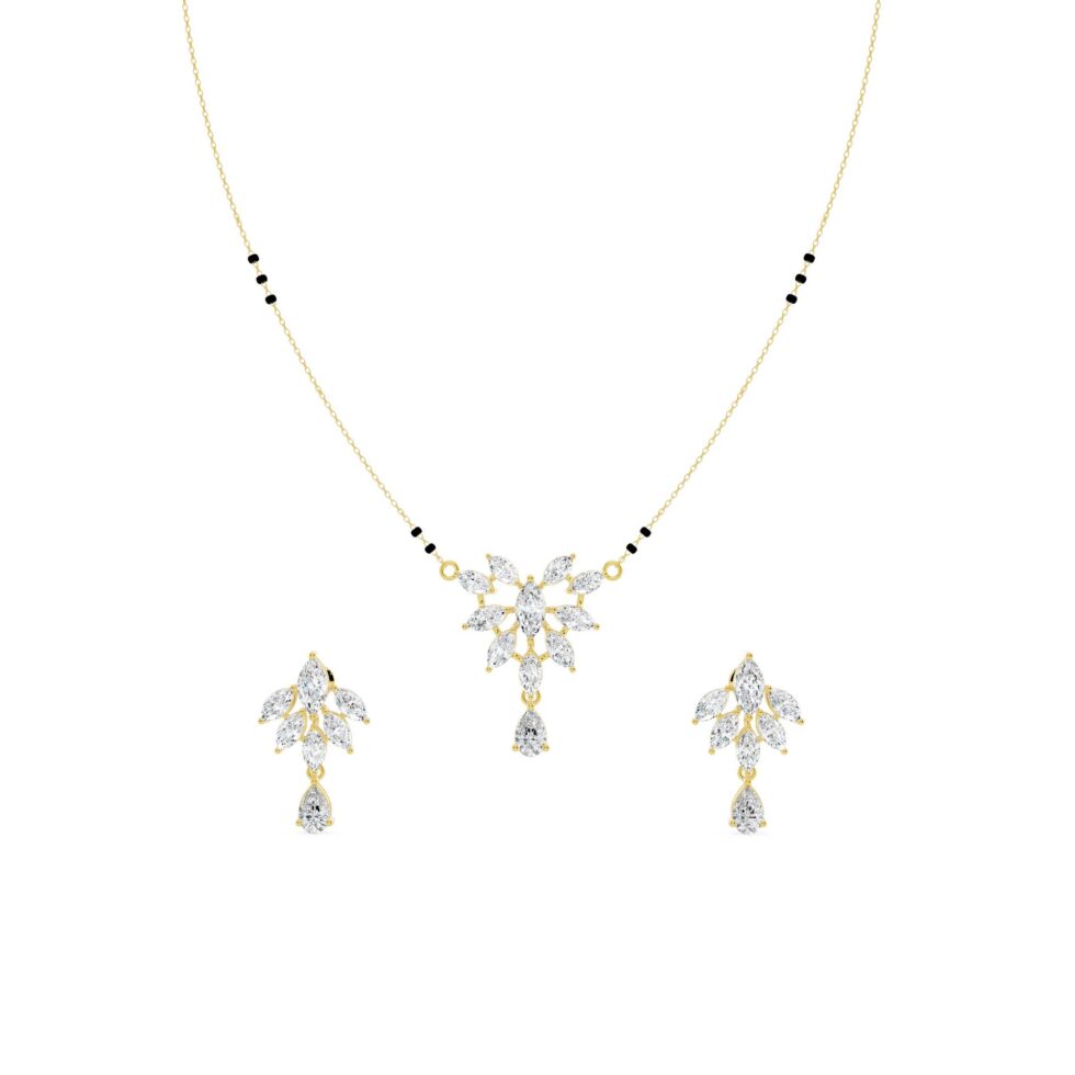 Divine Petal Diamond Mangalsutra With Earring 18kt Gold