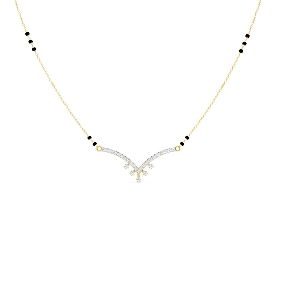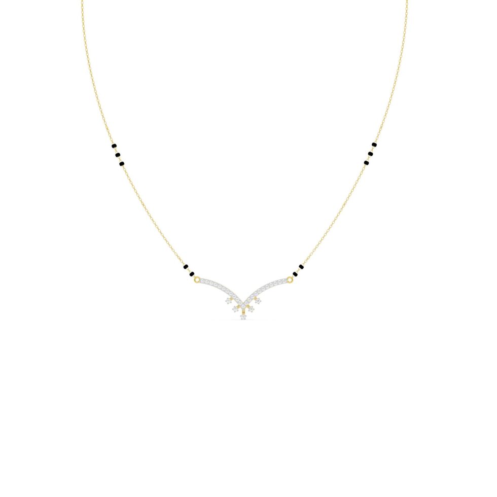 Elevate your elegance with the Divira Lab Grown Diamond Mangalsutra, a stunning blend of tradition and modern luxury. Crafted in radiant yellow gold, this exquisite mangalsutra necklace features round lab-grown diamonds with VVS-VS clarity and E-F color, offering unmatched brilliance and purity. With a total diamond weight of 0.15 carat, this timeless piece symbolizes eternal love while embracing sustainability. Perfect for the modern bride who values both beauty and responsibility.