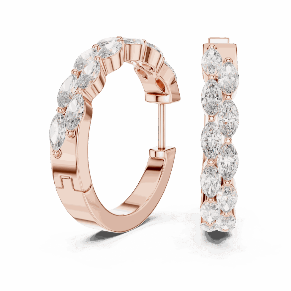 Double Layer Marquise Diamond Hoops 18kt & 14kt Gold