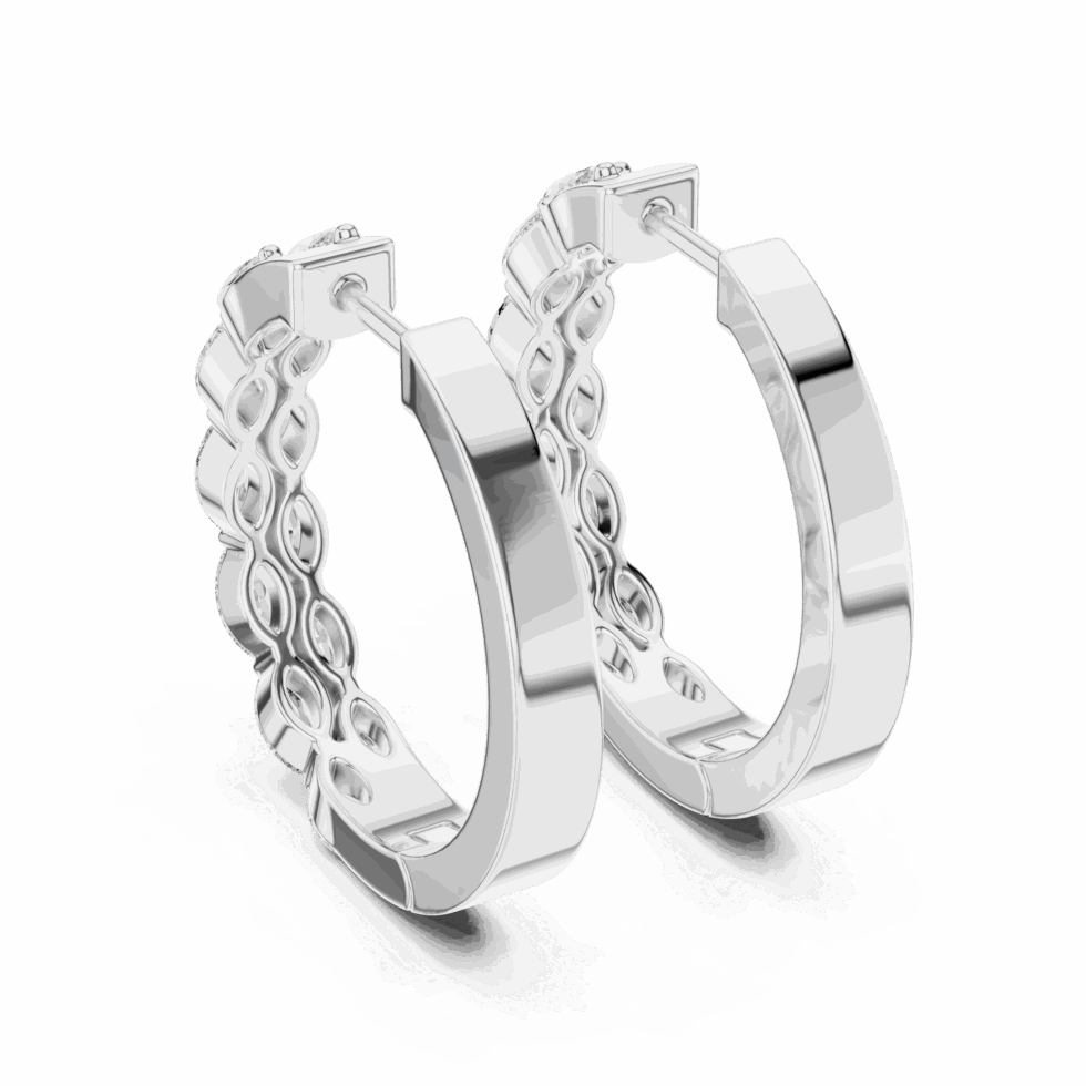 Geometric Diamond Bali Hoops in White, Yellow, or Rose Gold