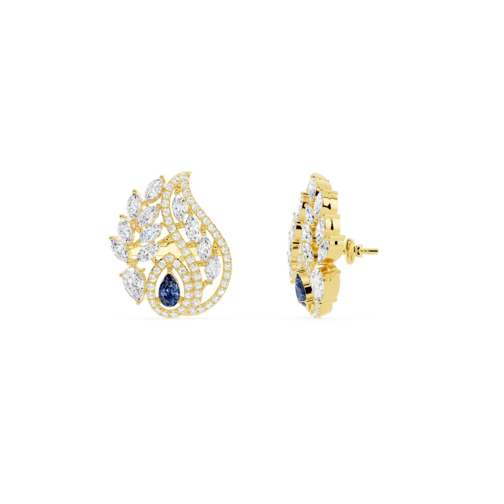 Add a touch of elegance with the Eterna Blue Diamond Cocktail Earrings, beautifully crafted in Yellow, White, or Rose Gold. Featuring a stunning mix of Round, Marquise, and Pear-shaped diamonds with VVS-VS clarity and F-G color, these earrings sparkle with 2.07 carats of diamonds and a 0.50-cent blue gemstone. Perfect for cocktail parties or special occasions, these earrings make a timeless statement of luxury and sophistication — an ideal gift for anniversaries or celebrations.