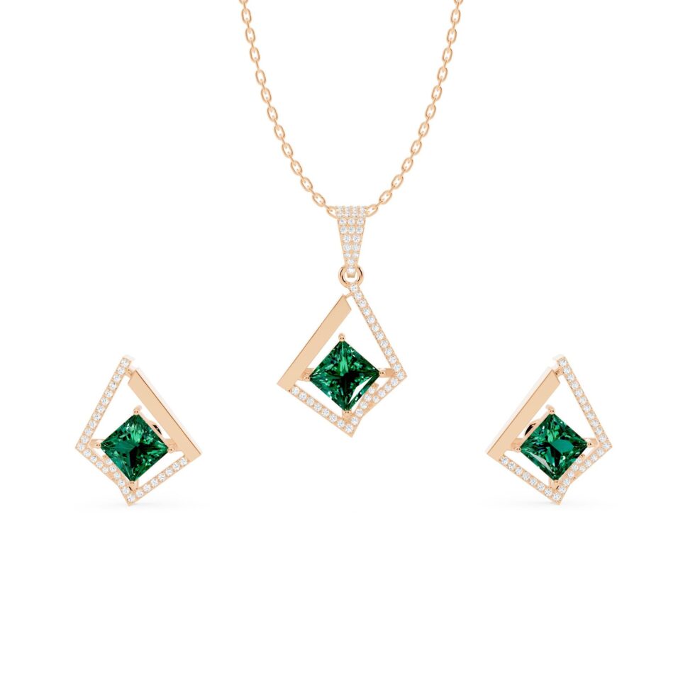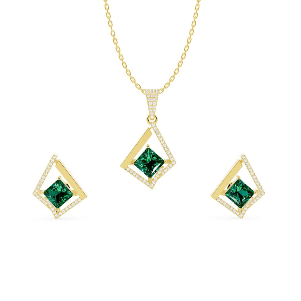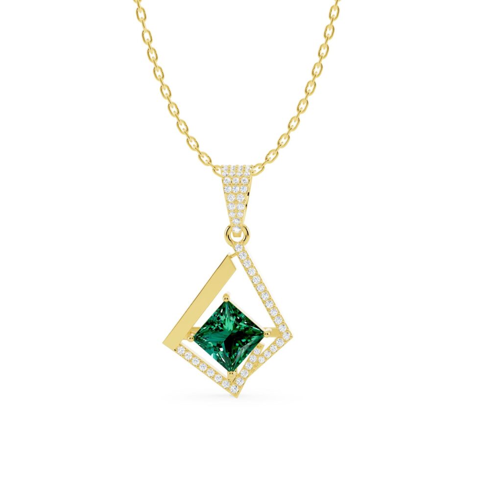 Geometric Emerald Glow Diamond Pendant Set 18kt & 14kt Gold