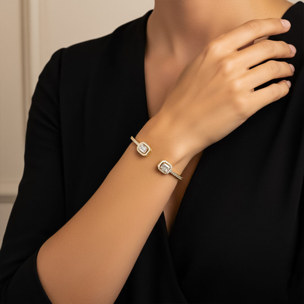 8 reviews for Radiant Lab Grown Diamond Cuff Bracelet in 14K Gold – Halo Design