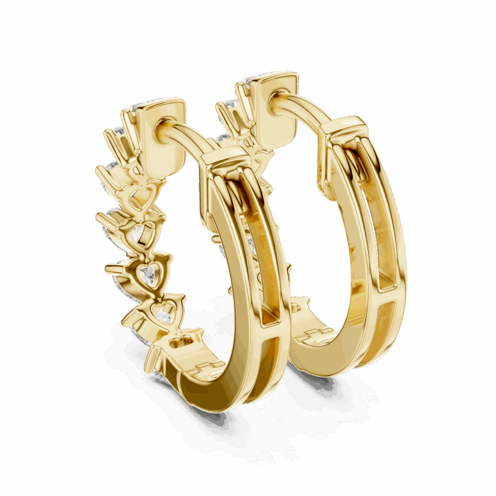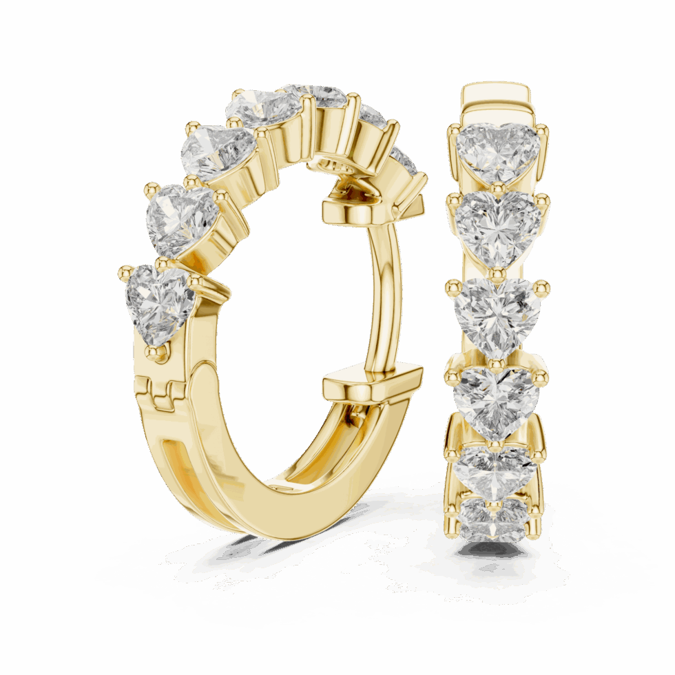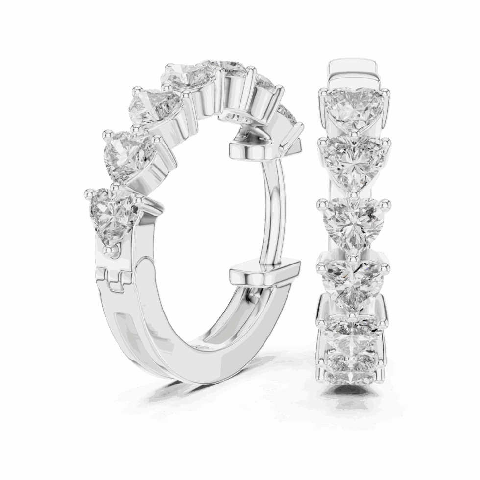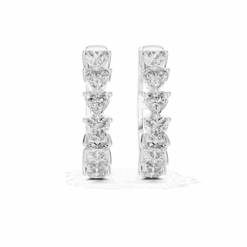 Fall in love with the Hearts of Eternity Diamond Hoops, crafted in 18kt & 14kt White, Yellow, or Rose Gold. These romantic hoops showcase dazzling heart-shaped diamonds with a total weight of 2.80 carats, featuring F-G color and VVS-VS clarity. Designed under the Earrings category and Hoops & Huggies sub-category, they combine bold brilliance with timeless charm. Perfect for gifting or adding sparkle to your own collection, these hoops radiate elegance and eternal love.