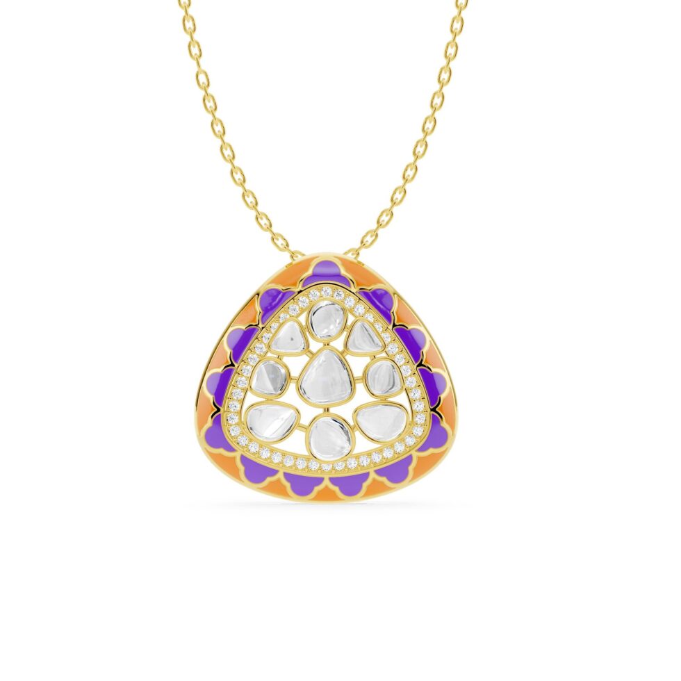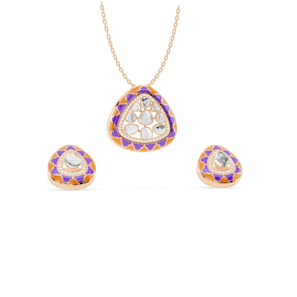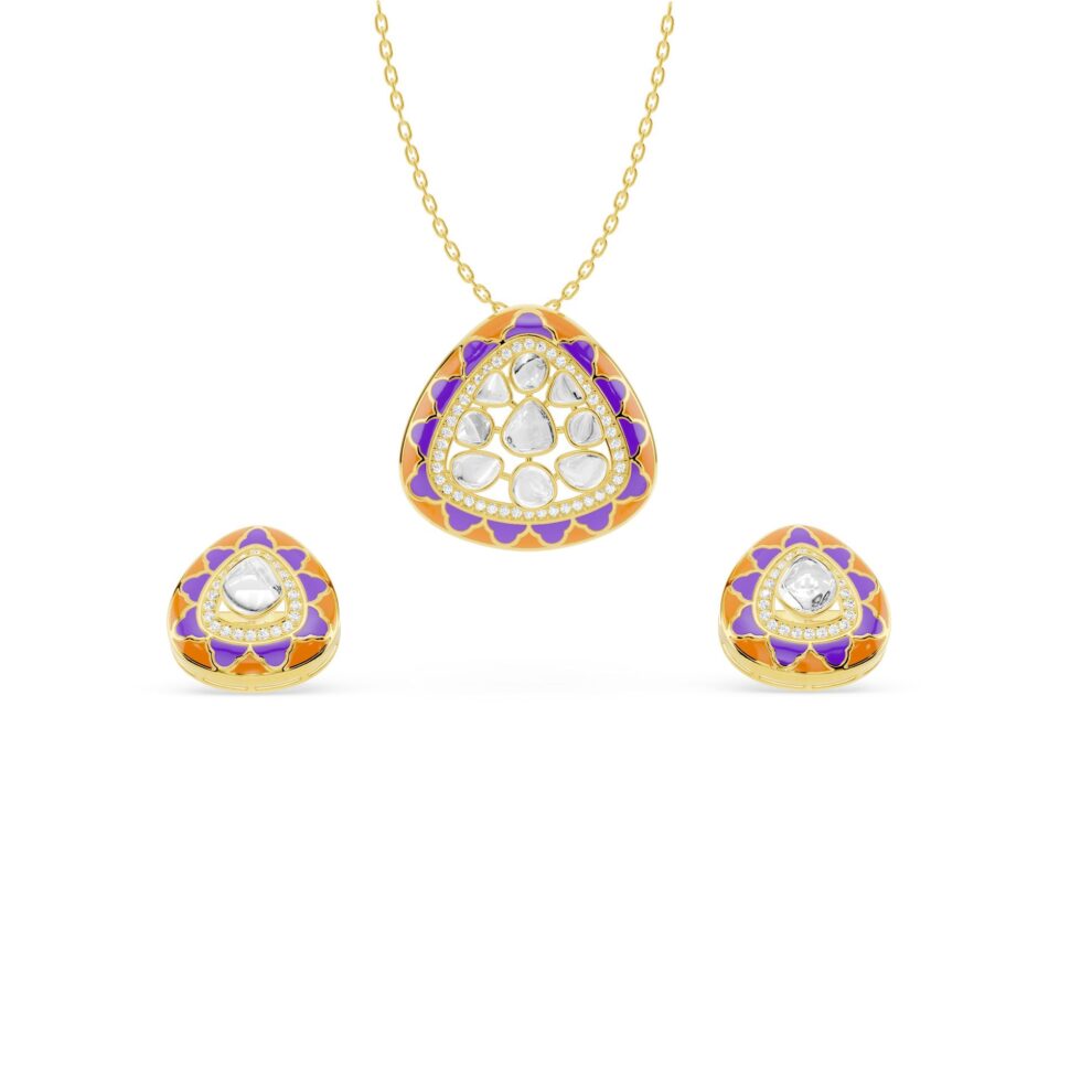 Ishvani Enamel Polki Pendant Set 14kt & 18kt Gold