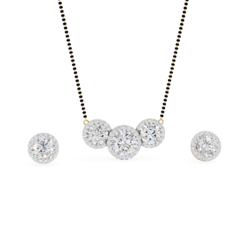 Classic Three Stone Halo Mangalsutra with Lab Grown Diamond Earrings