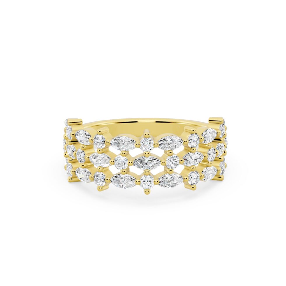 The Marquise & Round Diamond Three Row Eternity Band in 14kt & 18kt gold is a stunning symbol of everlasting elegance. Expertly crafted in white, yellow, or rose gold, this exquisite band showcases alternating marquise and round diamonds totaling 1.41 carats. With superior E-F color and VVS-VS clarity, the three-row design radiates brilliance from every angle, making it a perfect choice for anniversaries, weddings, or timeless everyday luxury.
