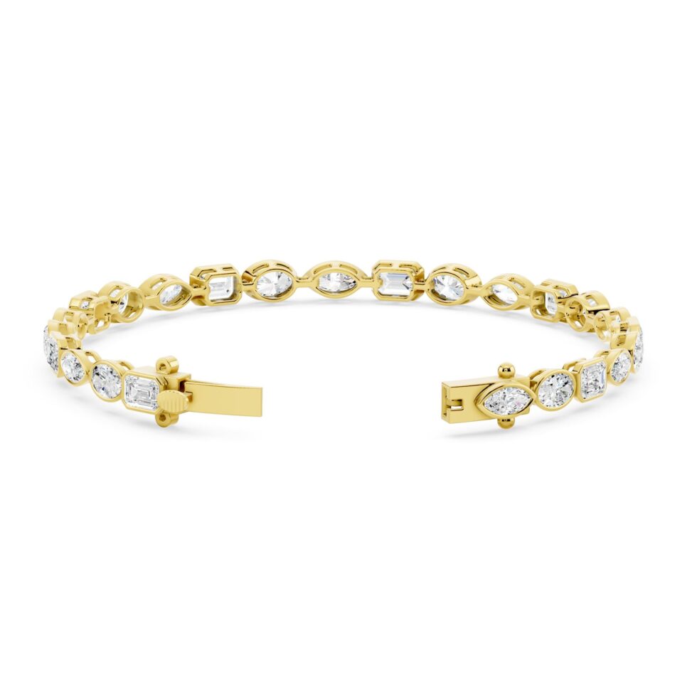 Elebrate life’s precious moments with the Multi-Cut Bezel-Set Diamond Bracelet, featuring 6.00 carats of oval, marquise, and emerald-cut diamonds. Crafted in yellow, white, or rose gold, its dazzling VVS-VS clarity and E-F to G-H color stones radiate timeless elegance. A luxurious bracelet that makes the perfect gift for anniversaries, birthdays, or special occasions.