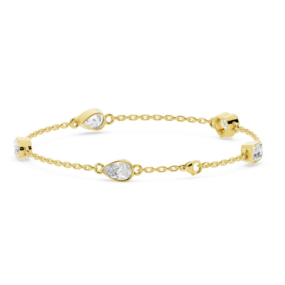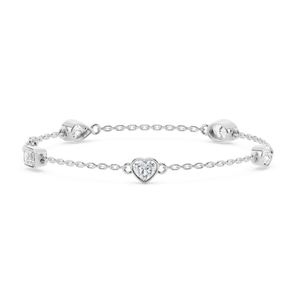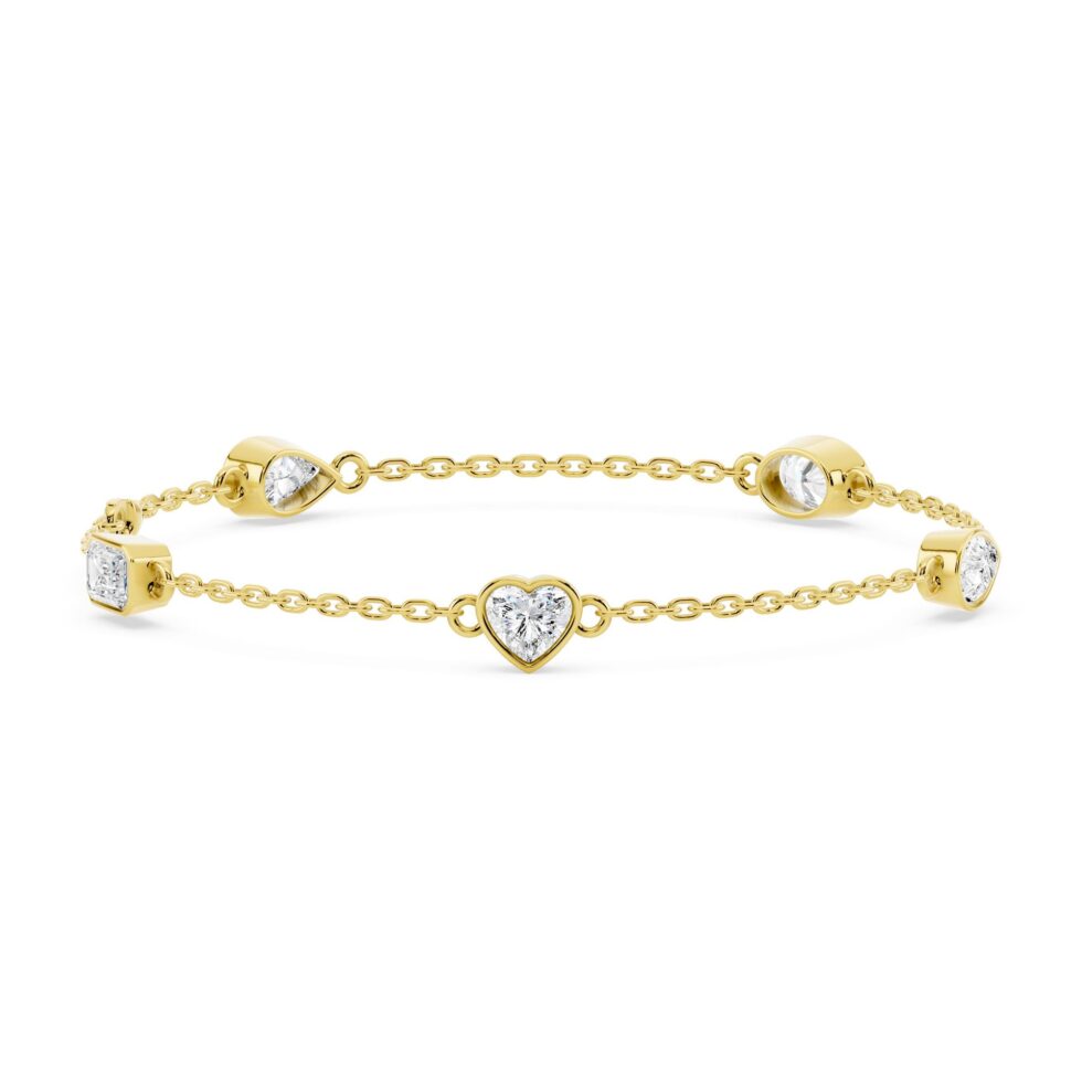 Elevate your everyday style with the Multi Shape Diamond Bezel Set Station Bracelet, beautifully crafted in 18kt and 14kt Gold. Available in White, Yellow, and Rose Gold, this elegant chain bracelet features multi-shaped round-cut diamonds of E-F color and VVS-VS clarity, with a total diamond weight of 2.50 carat. Each diamond is securely bezel-set, creating a sleek, contemporary look that sparkles from every angle. Perfect for layering or wearing solo, this bracelet blends modern sophistication with timeless grace. Daily wear, gifting, or adding a refined touch to your luxury jewelry collection.