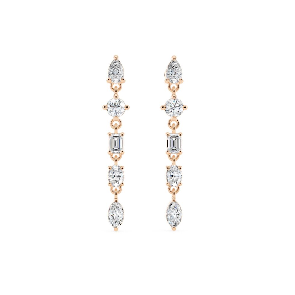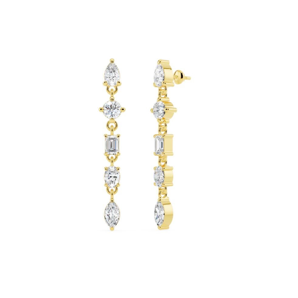Multi Shape Elegance Drop Earrings – Celebrate timeless beauty with these drop & dangle diamond earrings, available in Yellow, White, and Rose Gold. Adorned with Round, Oval, Marquise, Pear, and Emerald-cut diamonds, totaling 1.02 carat with E–F color and VVS–VS clarity, these earrings exude sophistication and sparkle. Perfect for gifting on birthdays, anniversaries, or special occasions, they make a luxurious statement of love and elegance.
