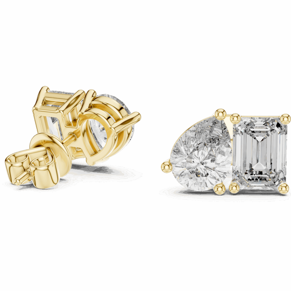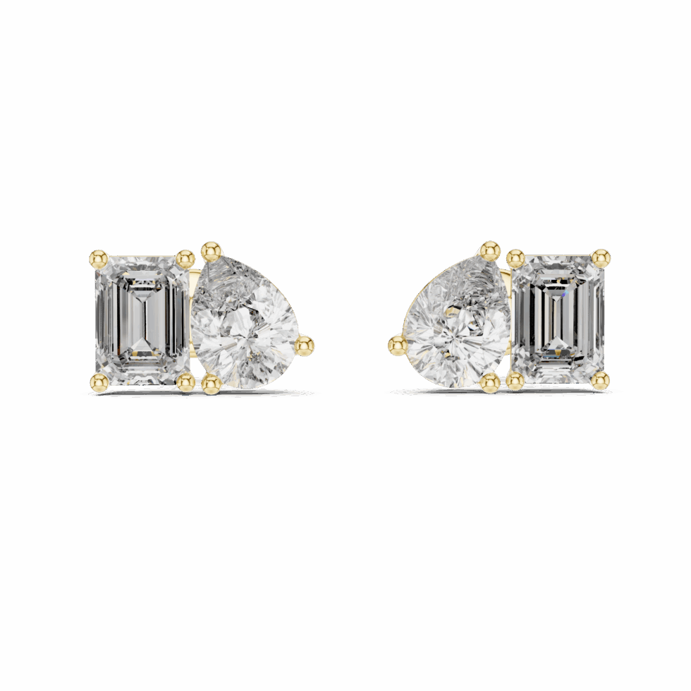 Elevate your elegance with the Pear & Emerald Toi Et Moi Diamond Stud Earrings, a stunning fusion of timeless sophistication and modern allure. Featuring a captivating pear and emerald-cut diamond duo symbolizing “You and Me,” these earrings radiate brilliance and harmony. Expertly crafted in White, Yellow, or Rose Gold, they boast VVS–VS clarity and E–F color diamonds for exceptional sparkle. With a 1.00 carat solitaire and a total diamond weight of 3.60 carats, these studs are perfect for adding a luxurious touch to any occasion.