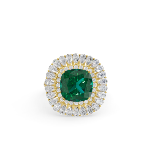 Lab Grown Emerald & Diamond Cocktail Ring in Gold – 3.6ct Glamour