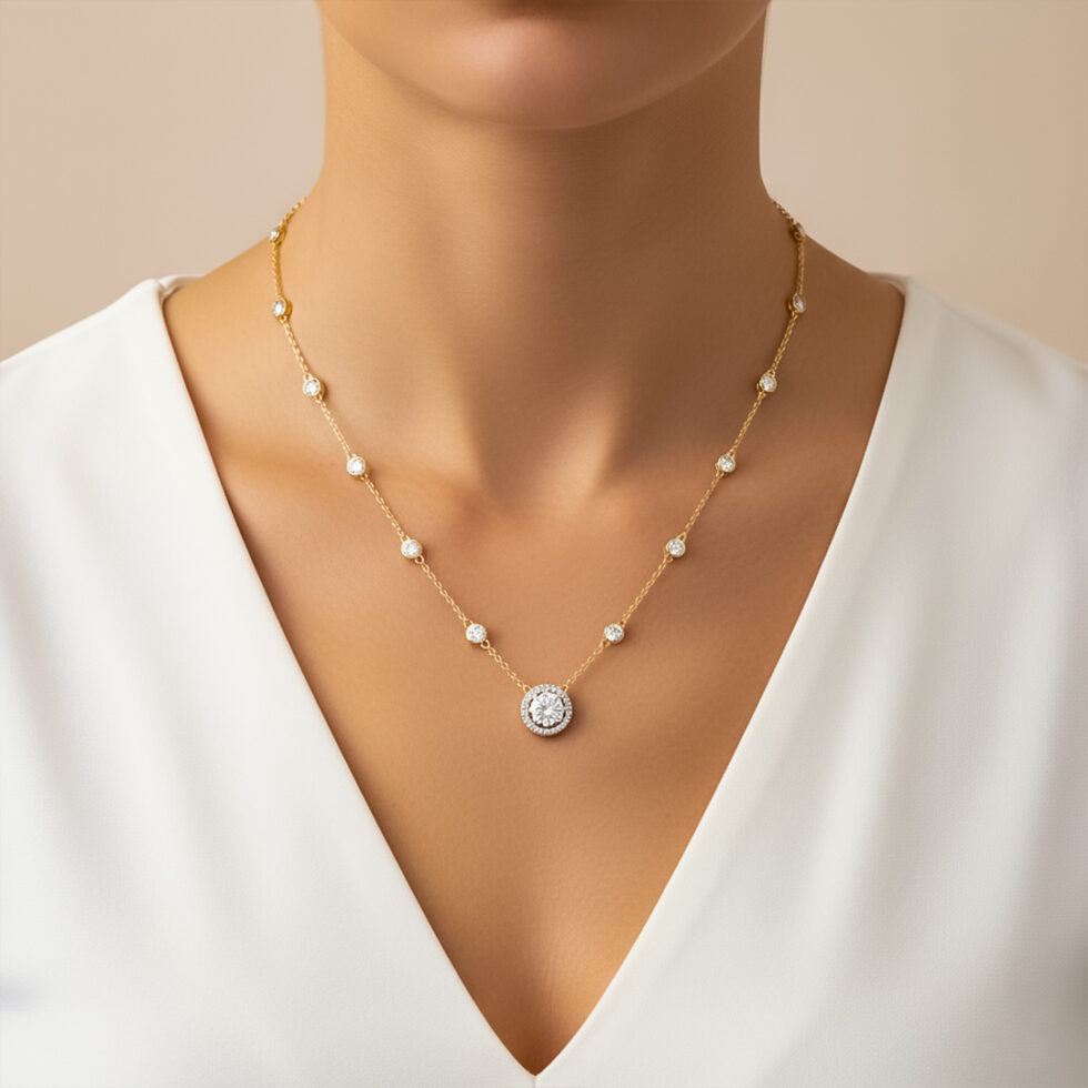 10 reviews for Lab Grown Round Halo Diamond Station Necklace for Everyday Elegance