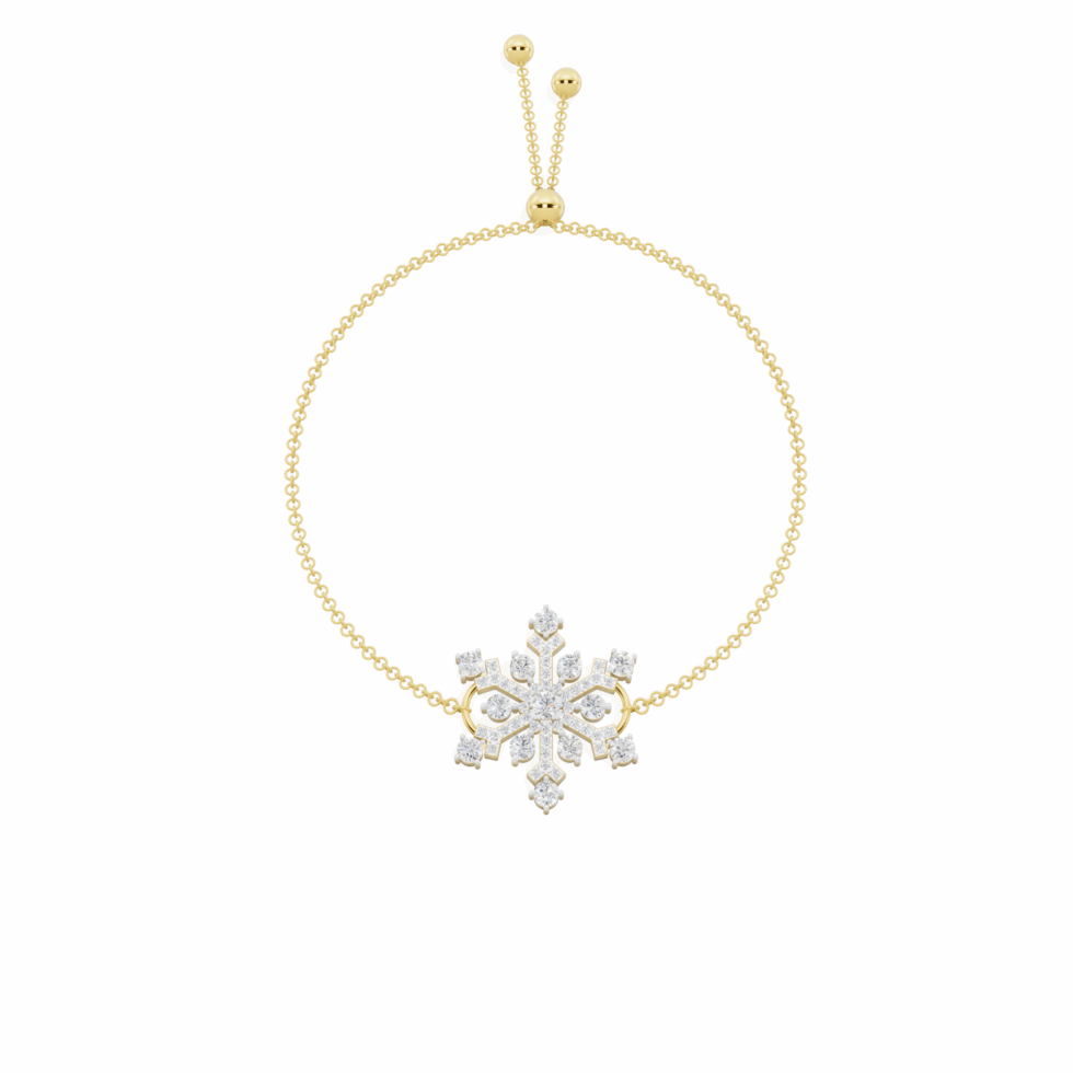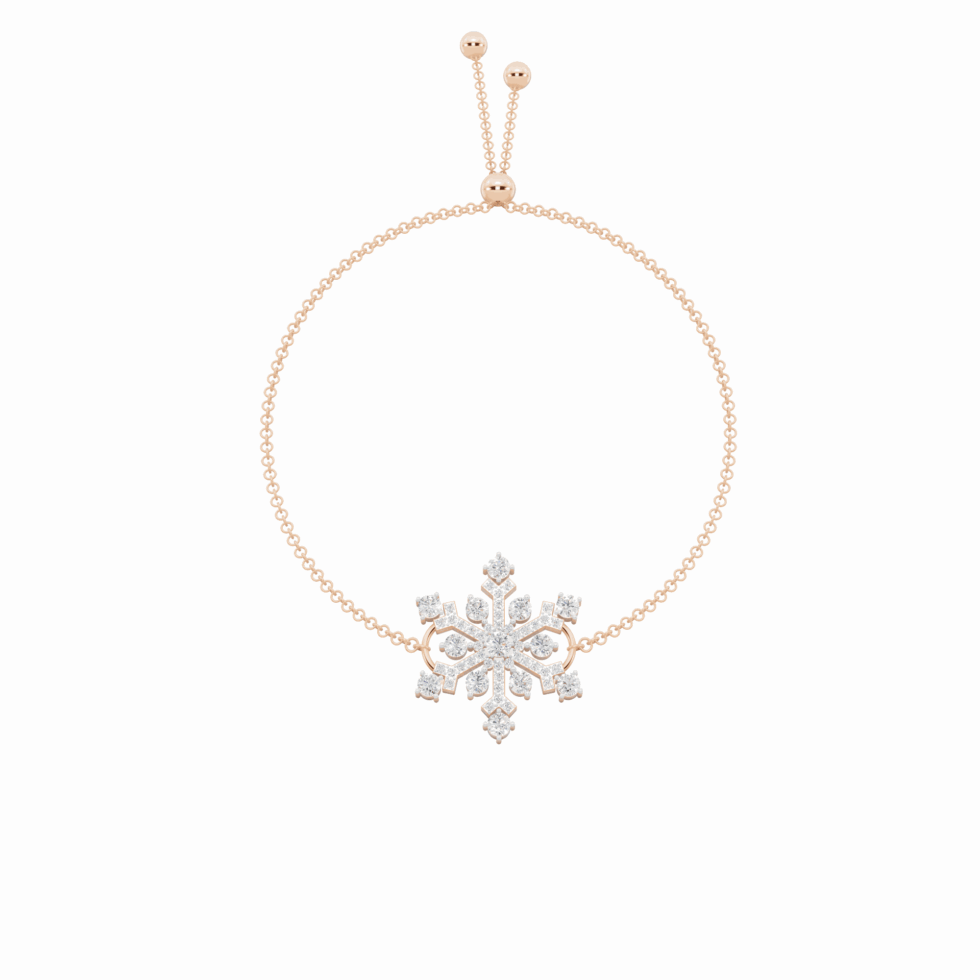 0.85 Carat Snowflake Design Diamond Chain Bracelet in 14K White, Yellow, or Rose Gold Inspired by nature's elegance, this snowflake diamond bracelet features dazzling round lab grown diamonds totaling 0.85 carats, with exceptional E-F color and VVS-VS clarity. Crafted in 14K white, yellow, or rose gold, the delicate chain and snowflake centerpiece make it a statement of winter grace. Ideal for Christmas, anniversaries, birthdays, or bridal gifting, this bracelet blends timeless sparkle with feminine charm.