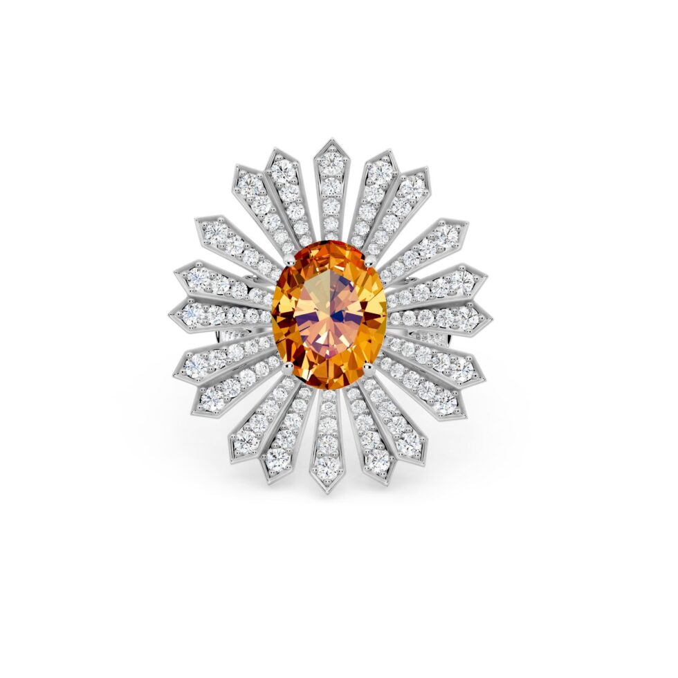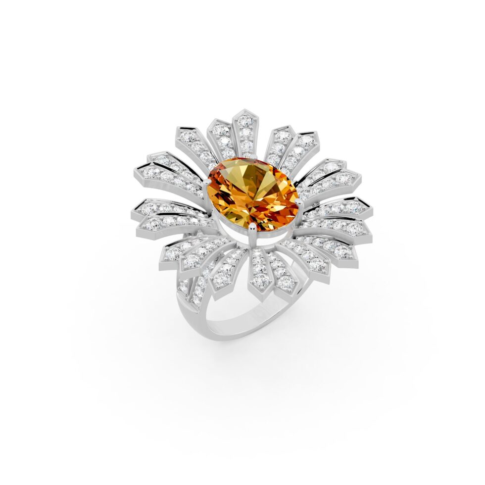Radiate charm and elegance with the Sunflower Delight Diamond Cocktail Ring, a stunning blend of artistry and brilliance. Crafted in Yellow Gold, White Gold, or Rose Gold, this exquisite ring features Round diamonds with E–F color and VVS–VS clarity, totaling 2.05 carats. The vibrant 5.00-carat gemstone adds a floral sparkle, reminiscent of a blooming sunflower. Perfect for parties, weddings, or as a luxurious gift for someone special.