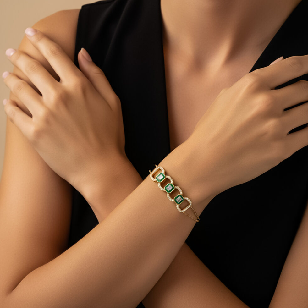 Timeless Elegance Lab Grown Diamond Emerald Chain Bracelet