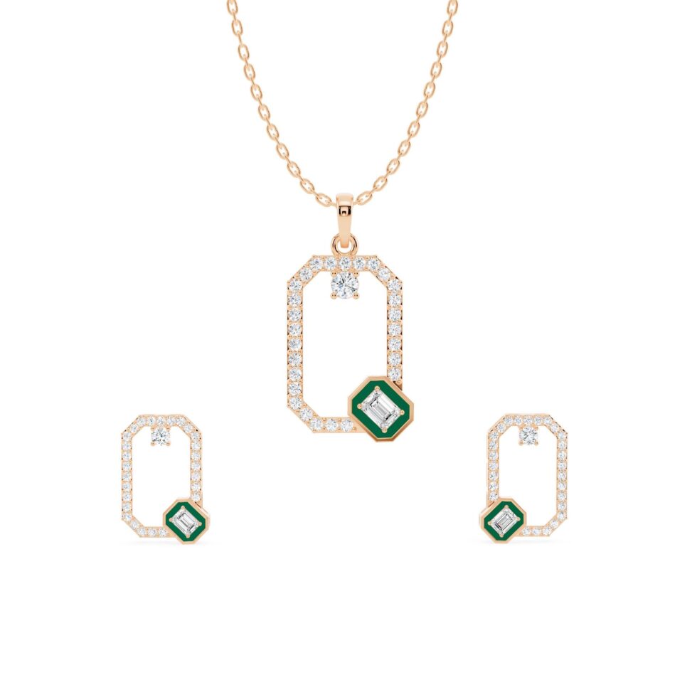 Timeless Elegance Emerald Diamond Pendant Set 18kt & 14kt Gold