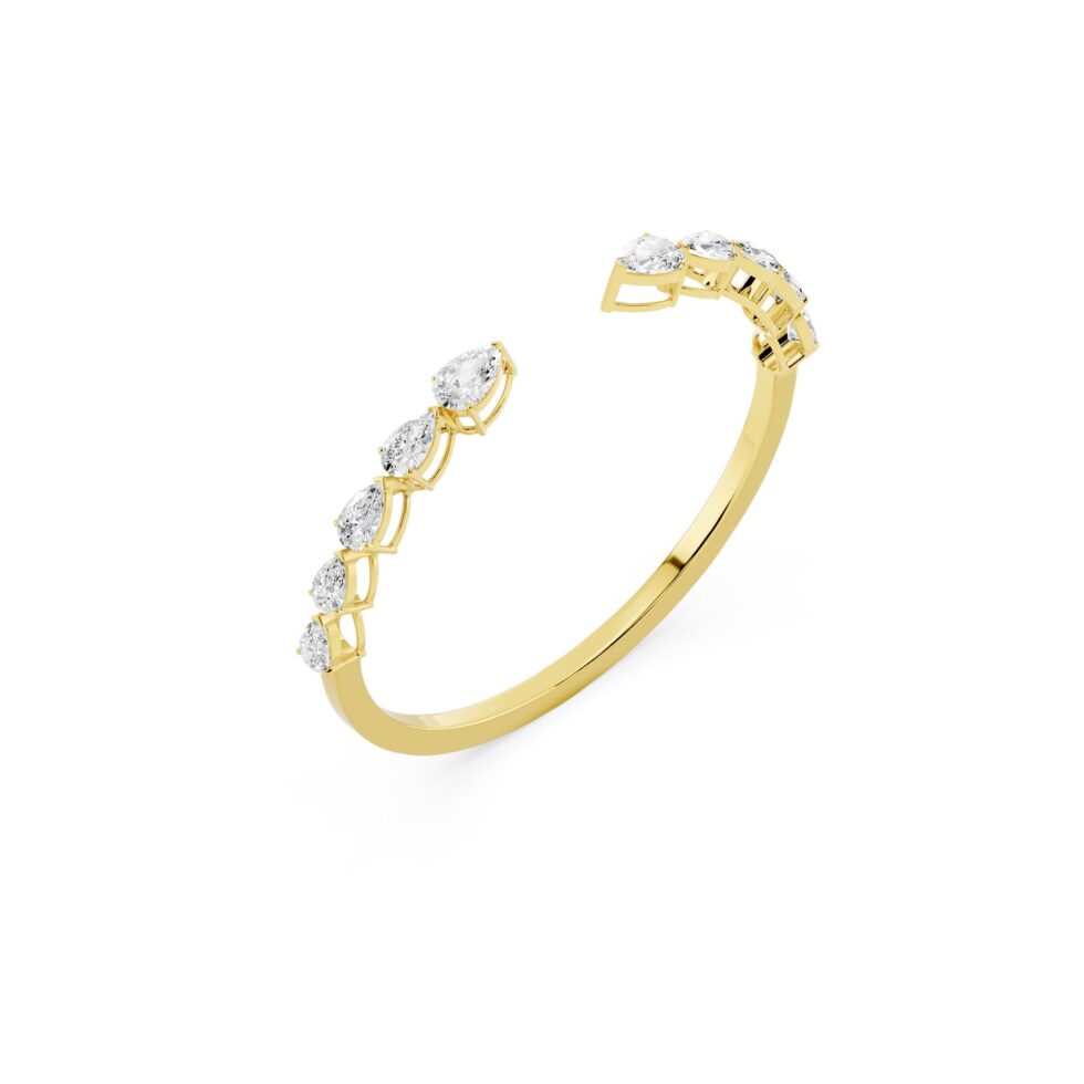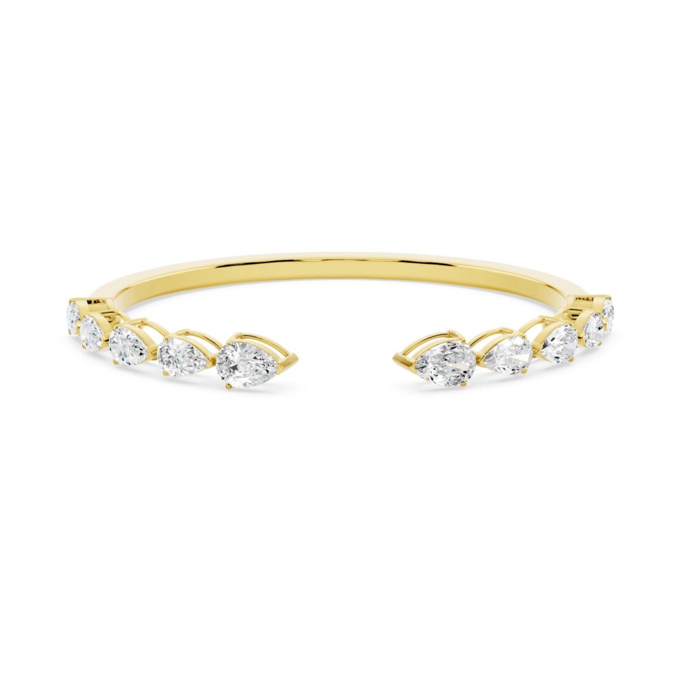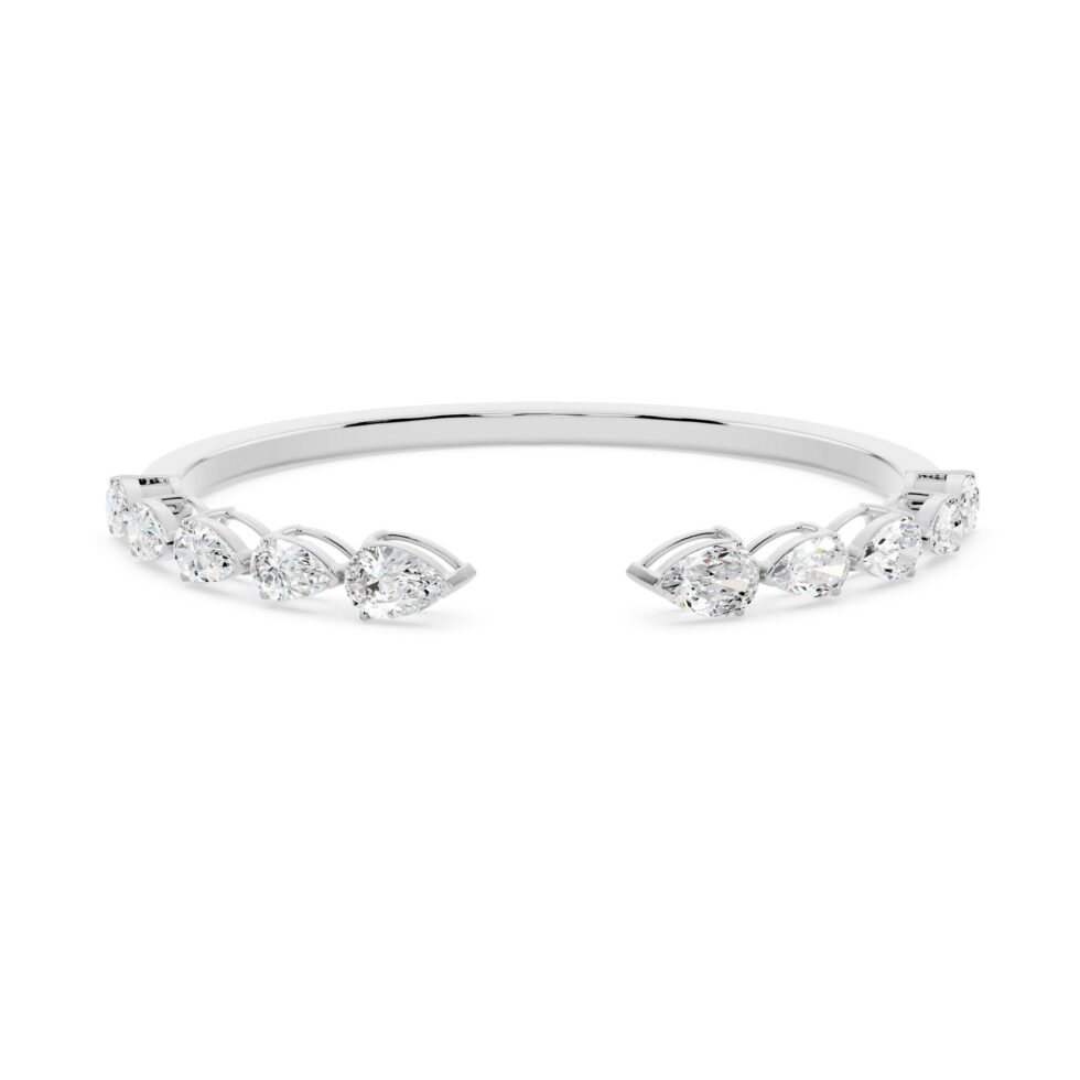 Grace meets geometry in the Trailing Pear Cuff Bracelet, where 7.20 carats of pear-shaped lab grown diamonds shimmer in a cascading silhouette. Expertly crafted in 14K white, yellow, or rose gold, each diamond boasts F-G color and VVS-VS clarity for maximum brilliance. The open cuff design adds a modern edge to timeless elegance ideal for milestone celebrations, anniversaries, birthdays, or luxury gifting.