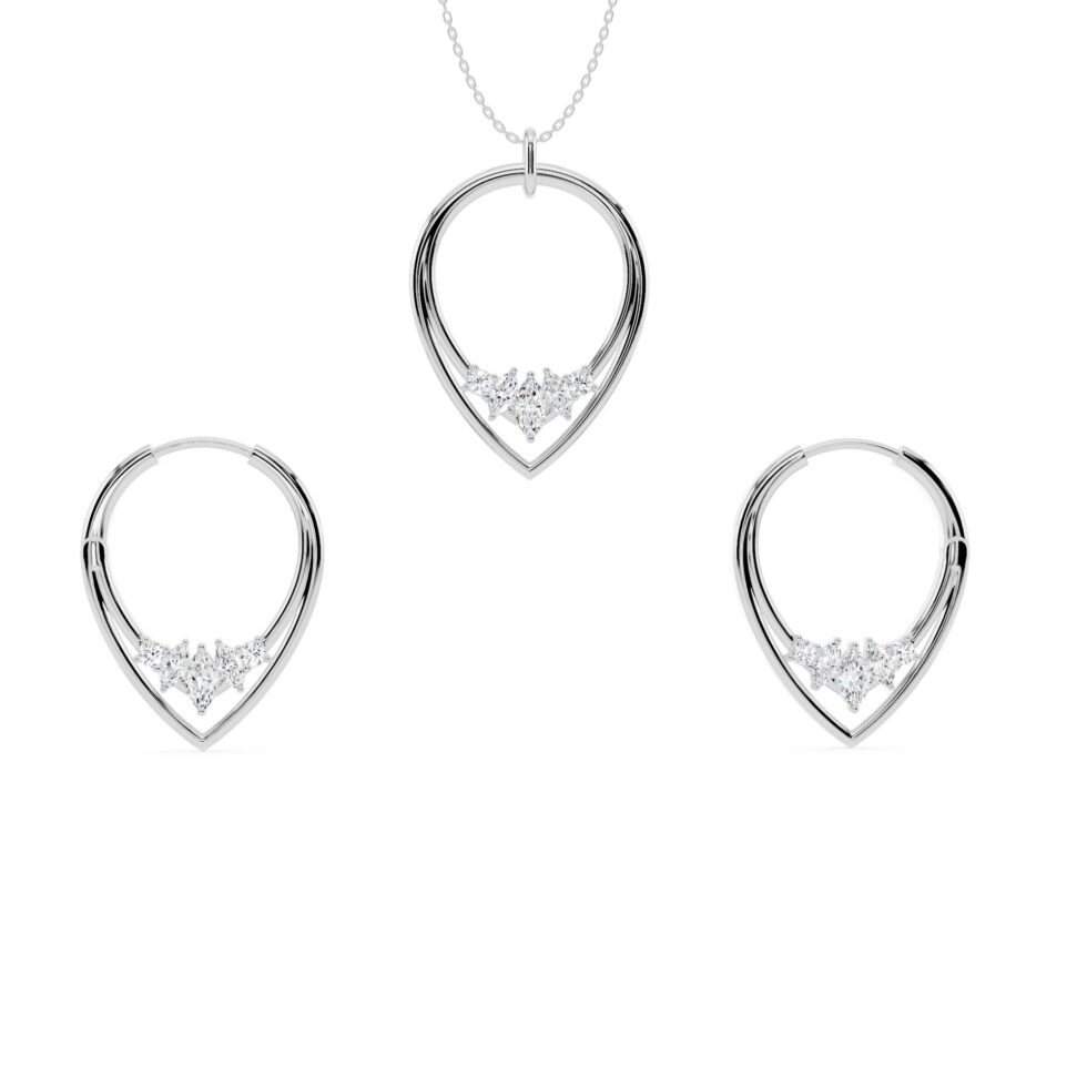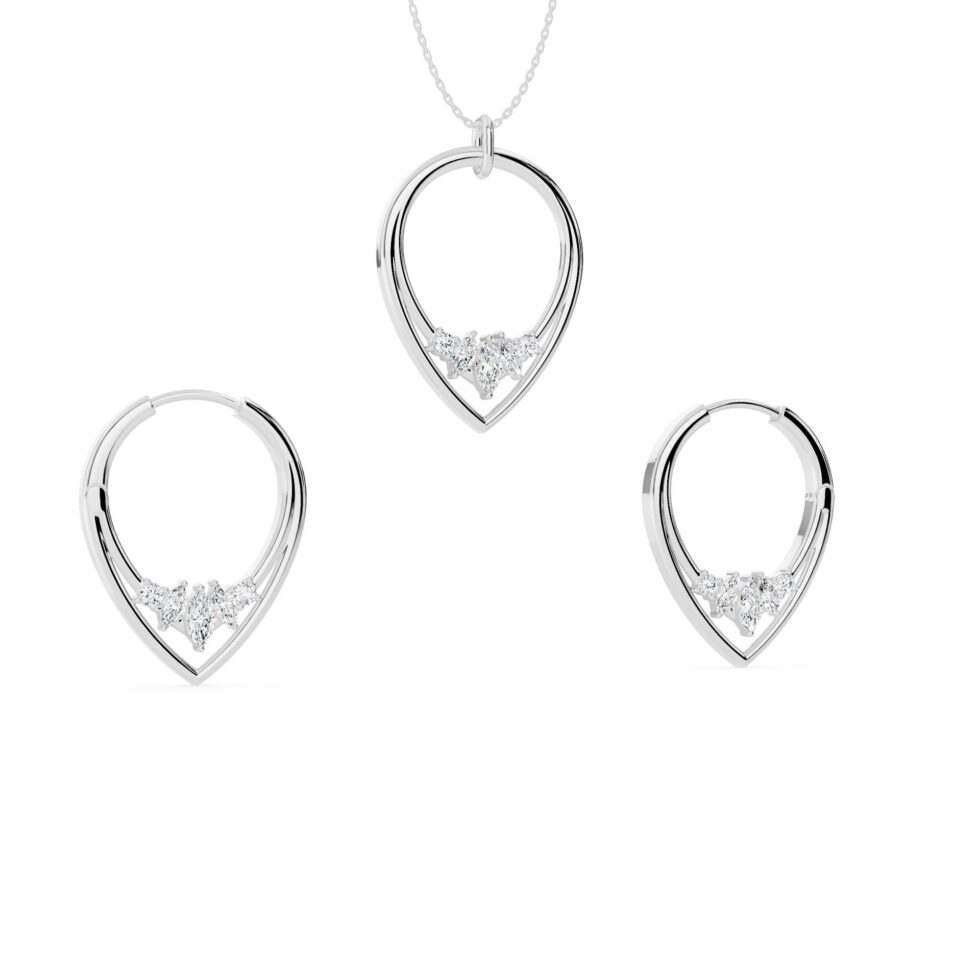 Floral Leaf Pear Drop Lab Grown Diamond Necklace & Earring Set